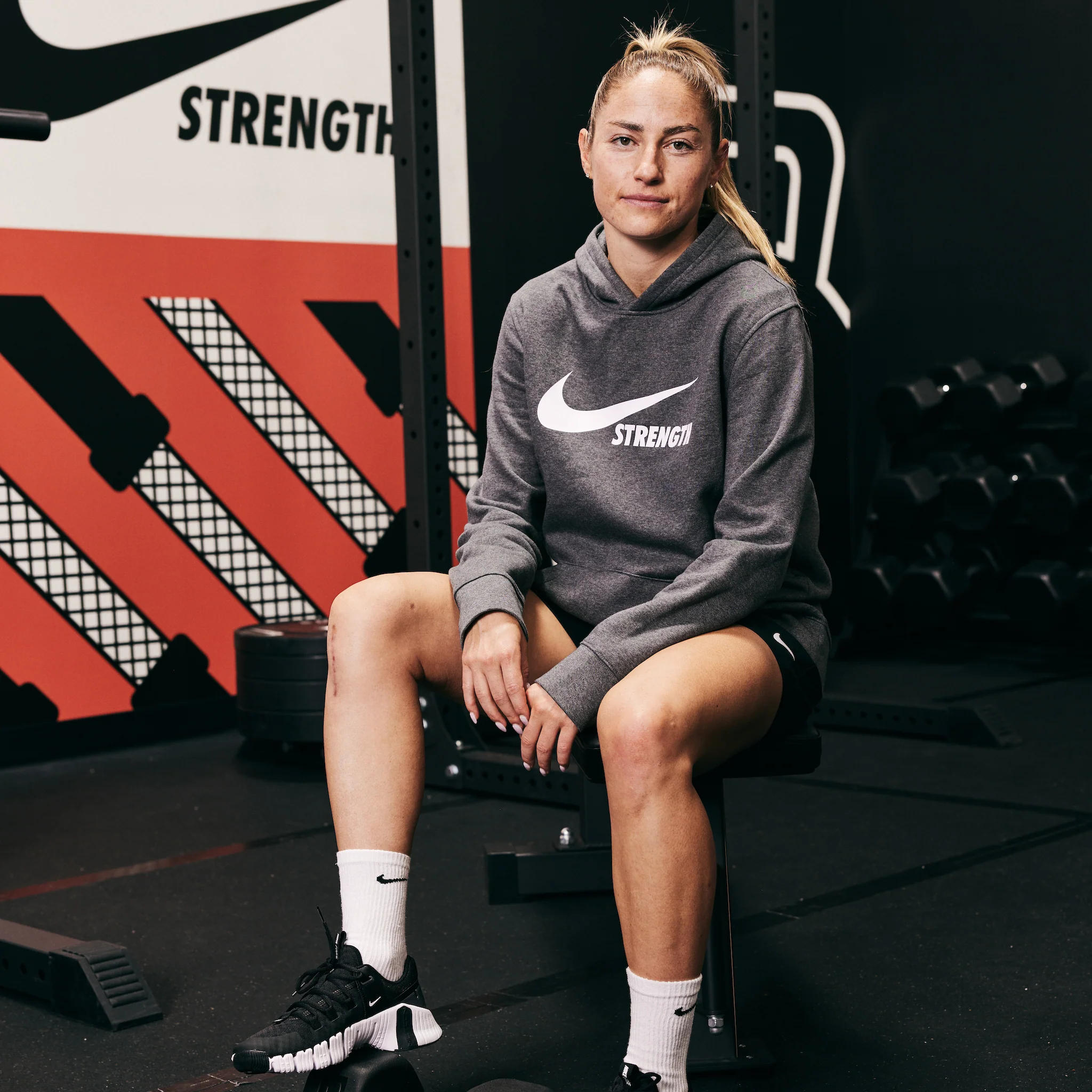 A closet and gym staple, the Nike Strength Hoodie features a "Swoosh Strength" logo on the center chest. Classic style wrapped in the soft comfort of fleece for everyday wear. This will quickly turn into your "go to" fleece. What is your Strength?